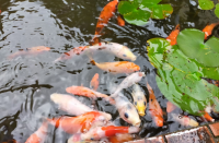 1日目は高学年が対象でしたが、たくさんの子ども達が訪れ、大人気でした。一人3粒の小さな鯉の餌をもらい、大事そうに鯉に餌をやっていました。