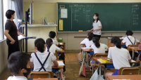 学校では、少しでも教室が換気されるように廊下側の窓を全て取り外し、オープンにしました。また、教室が広く使えるように、水筒やピアニカを廊下に並べてあるクラスもあります。