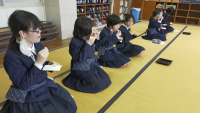 掃除が始まると、6年生の班長だけでなく、上級生がとても親切に1年生に掃除の仕方を教えてあげていました。1年生も、とても神妙な顔で、一生懸命に掃除をしていました。