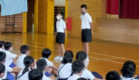朝、久しぶりに全員が集まっての「全校朝会」を行いました。