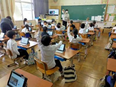 校内を回ったときには1年生と4年生が、一人1台のパソコンを使ってGoogle クラスルームで練習していました。でも、何とかこのような日が来ないことを願っています。