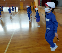 子ども達は、昼休みや長休み、元気になわとびやバスケット、卓球やサッカー、外遊びなどで遊んでいます。寒くて部屋に閉じこもりがちにはなりますが、しっかり身体を鍛えることも、感染対策の1つとなります。1年生は、なわとびがとっても上手になり、2重跳びができる子も増えてきました。今日は、6年生にすごい技を見せてもらっていました。