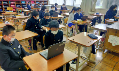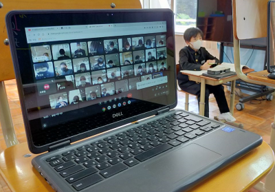 黒板の見えやすさや、音声の聞き取りやすさなどを確認しましたが、概ね良好だったようです。実際に自分の家で授業を受けるとなった場合、「少しよそ見をしていても分からないのでは」とも思いましたが、先生のパソコンには、しっかりとみんなの様子が映っていました。生の授業のリアルタイムのやりとりには叶わないかもしれませんが、万が一臨時休校が続いたときには、少しでも学習の助けになると思います。