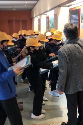 九谷焼美術館では、係員の方から九谷焼の歴史や、名前の由来を教えていただき、実際のお皿や花瓶など見学してきたようです。子ども達からは、「本物を見ることができてうれしかった」「赤絵の間の作品は、線が細く細かくてすごかった」などの感想が聞かれたようでした。