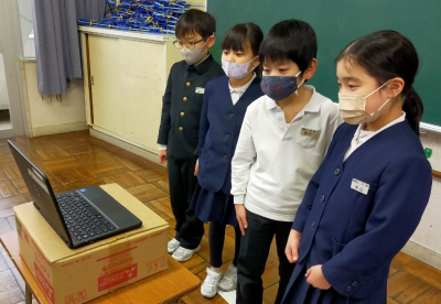3年生が、石川県の刈安小学校との「オンライン交流授業」を行いました。うまくつながるまで、そしてつながってからも、子ども達はちょっと緊張気味で、ドキドキしていたようでした。