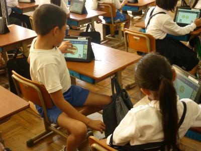 今日は、1年生が一人一台端末にてオクリンクの使い方を学びました。