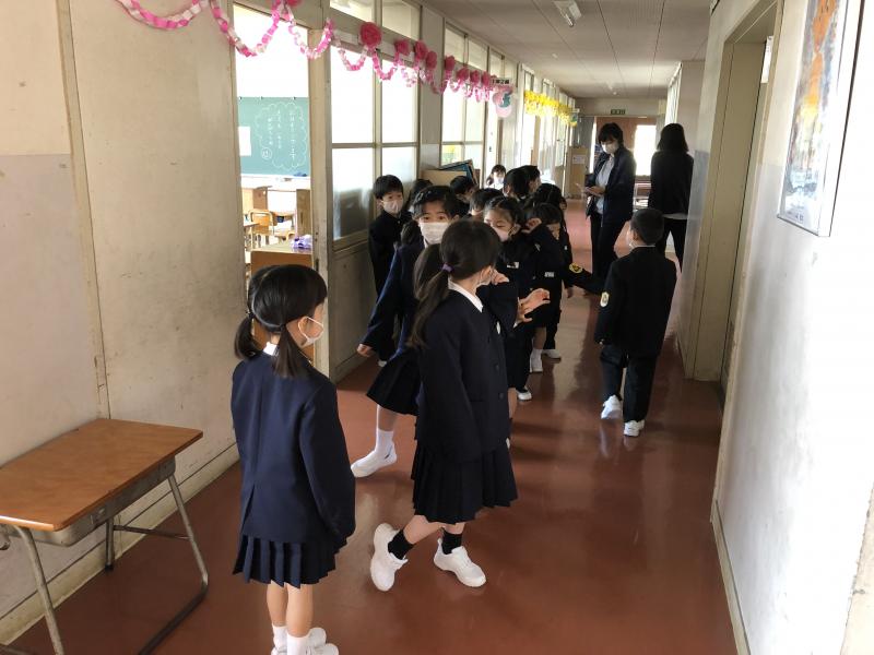 毎朝、解錠時刻には検温チェックを待つ行列ができます。その中には黄色いランドセルカバーをつけた1年生の姿も見られますが、1列に並んで行儀よく待っていました。上学年をお手本にしているようです。いいことはどんどん引き継いでいってほしいです。