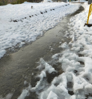 とはいえ、子どもはやはり元気です。スケートリンクのように凍ったアスファルトの上で、楽しそうに滑っていました。
