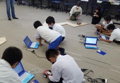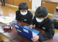 1月18日(月)昨日も紹介した、「ロボレーブクラブ記録会」が行われました。コースは当日発表と言うことで、決められたコース通り車が走るよう、コンピュータにプログラミングしていきます。