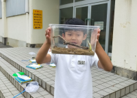 午後になってプール掃除をしているときに、2年生がプールの周りで、とんぼやちょう、ダンゴムシなどの虫探しをしていました。「いろんな虫を捕まえたよ」と言って、子ども達が集まってきて見せてくれました。中には、かなへびをつかまえたという子もいました。