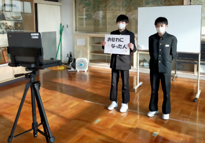 企画委員会と体育委員会の人たちが、3月の生活目標「お世話になった人に感謝しよう」というテーマで、話をしてくれました。