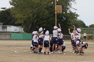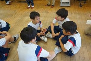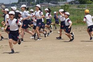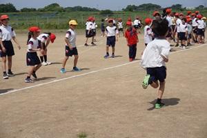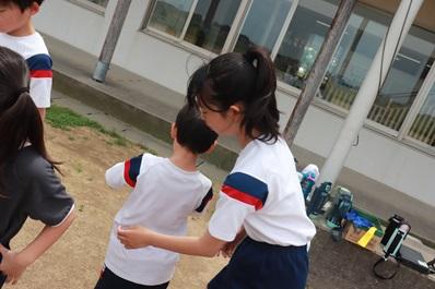 しっぽ取りをするグループ、1年生に手助けをする6年生
