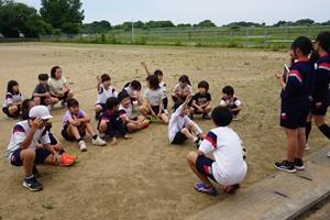 3年生、練習しています!この写真は、練習後の振り返りの様子です。