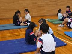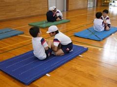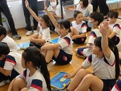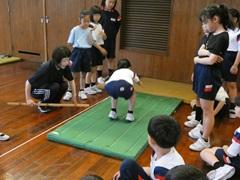 体育の時間で、ボール投げや握力などを測定していますが、10日は上体起こし、反復横跳び、立ち幅跳び、体前屈を測りました。