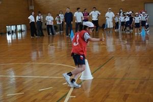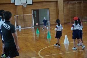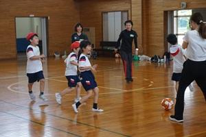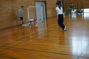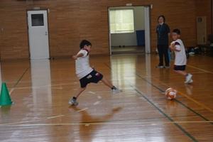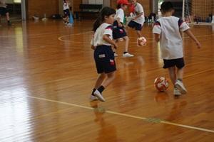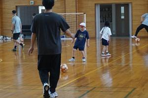 初めはウォーミングアップをして、その後サッカーボールを足で蹴ることをしました。