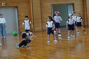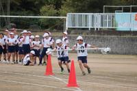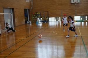 ゴールに向かってドリブルやシュートをすると、児童の気持ちはさらに楽しくなり、もっとボールを蹴りたいとアポールしていました。