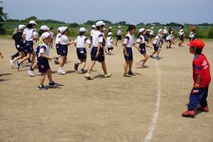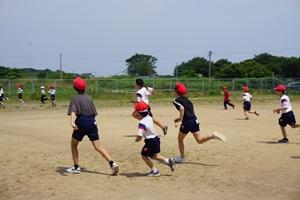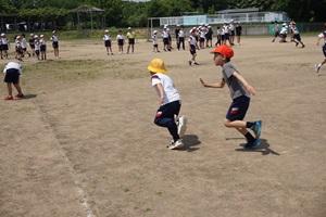 暑かったけれど、運動場で、鬼役、逃げる役に分かれて、走り回りました。