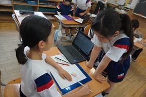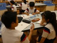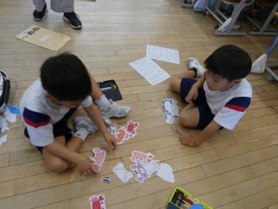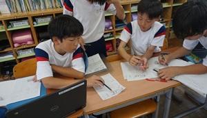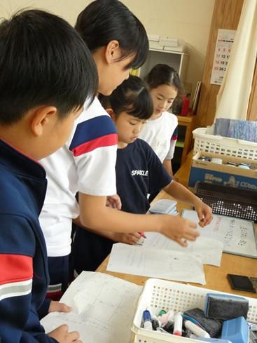50人近くの先生たちが来校されたので、はじめは緊張していた金明っ子ですが、だんだんいつもの姿に戻り、課題を解決しようとしていました。時には1人で解決する・問題を解く姿もあり、友達と協働して解決しようとする姿もあり、ヒントカードを見て考える姿もありました。