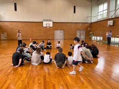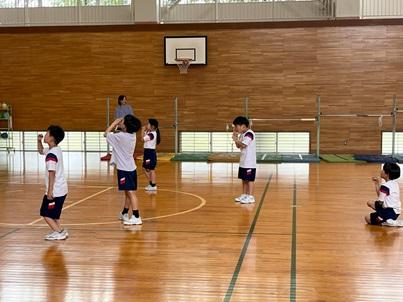 体育館も暑くて少し動いただけでたくさんの汗が出ました。その中で、おうちの方と一緒に、楽しく競技ができたことで、3年生はニコニコ笑顔でした。
