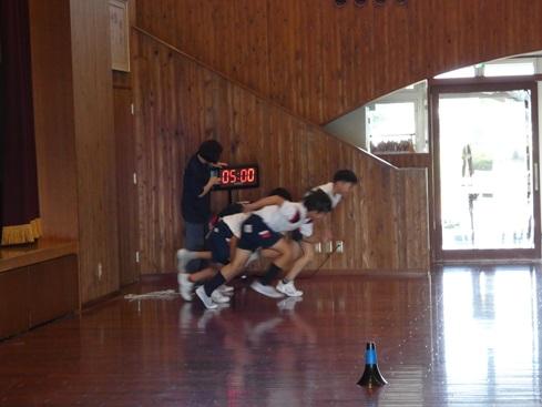 後半は、体育館に場所を移して、缶積みやチョロQチキンレース・豆つまみのゲーム、柿の葉寿司やチョコマシュマロ・ポップコーン・綿菓子・ジュースなどの飲食で、たくさん話し、食べ、ゲームで対決していました。