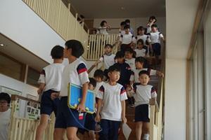 急な放送で驚いた児童もいましたが、落ち着いて行動ができていました。