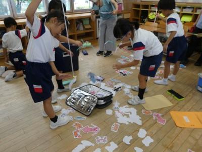 危険な場面を考えて、様々な避難訓練をおこなっています。
