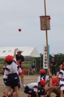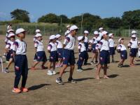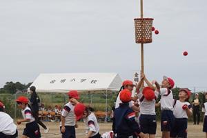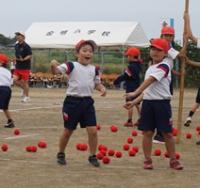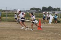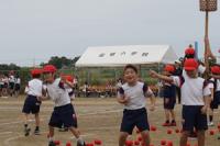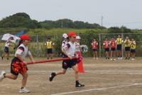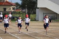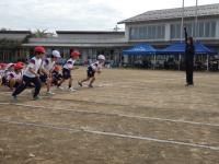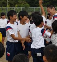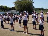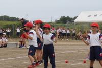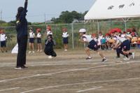 暑い日となった16日の午後から、3年生の学年行事を行いました。保護者の方と一緒に児童は、運動会をしました。種目はピンポン玉リレー、ボール送り、王様ドッチボールです。
