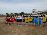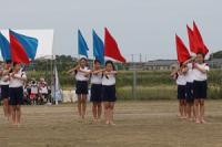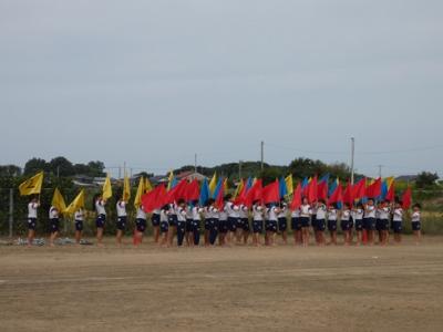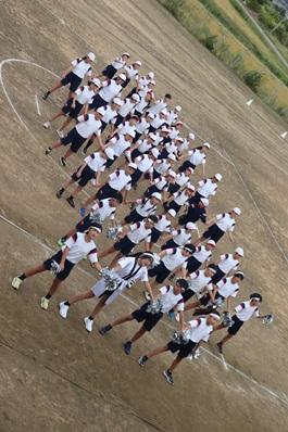 運動場で集合するグループ