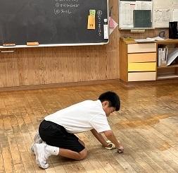 朝から雨が降り、じめじめした日になりました。今日は教室のワックス塗りを行うため、全校で汚れ落としをしました。どの児童も一生懸命に床の汚れを落とし、最後は水拭きをしてきれいにしてくれました。学校、校舎を大切にしてくれる姿を見て、うれしくなりました。