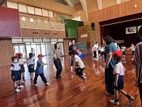 初めに、運動会の団の色を抽選しました。団長の登場からくじ引きまで、ドキドキしながら全校で見守りました。団の色が決まったら、ふれあいタイムです。「だるまさんが転んだ」や「じゃんけん列車」などをして、みんなで楽しみました。