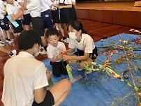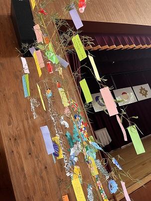 6年生が1年生の補助をして、短冊を飾りました。また、2年生がたくさんの飾りを作ってくれて、華やかになりました。