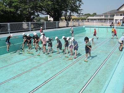 6月10日(金)のプール開きに向けて、5・6年生がプール掃除をしてくれました。