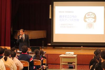 金明っ子学習発表会終了後、学校保健委員会を開催し、児童は保護者の皆さんと一緒にお話しを聞きました。