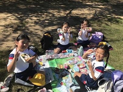 少し暑さもありましたが、とても良い天候の中、1,2年生が一緒に校外学習に出かけました。春はバスで移動でしたが、今回は徒歩で、加賀市中央公園へ。いつも歩くとしては長い距離、往復約9キロメートルはありました。校外学習中は、安全に移動して、友達とレクレーションやお弁当を仲良く楽しんでいました。学校に戻ってきた1,2年生の顔は楽しい満足した顔がいっぱいでした。