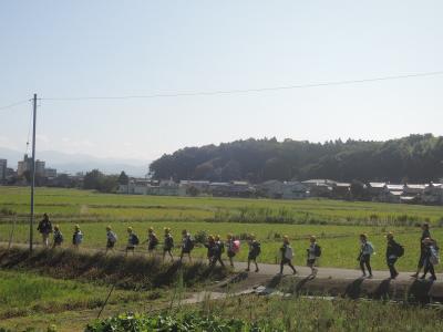 1年生と2年生は、柴山潟まで歩いて出かけました。道端でススキやアメリカセンダン草、エノコログサなどを見つけて遊んだり、用水でカメやカモを見つけたり、空がとっても高く風が涼しいことに気づいたり...と自然を感じながら往復6㎞以上をがんばって歩きました。