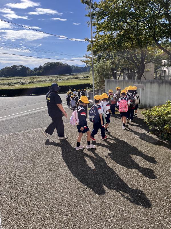 1,2年生は徒歩で、3,4年生はバスで出発しました。安全に、楽しんできてほしいです。出発式では、「安全に仲よく、そして自分の周りのことをよく見て、よく考え、正しい行動をしましょう」と伝えました。本校のめざす児童像「よく考え、自分から動く子」を意識してほしいと考えます。
