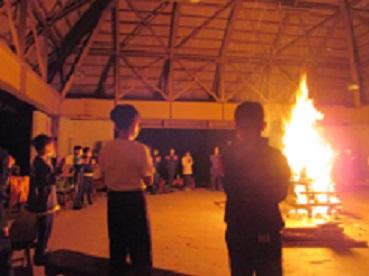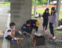 野外炊さん(まきで火をおこして土鍋でご飯を炊く)