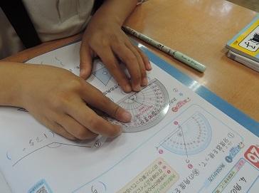 正確にはかるために 分度器を正しく置くことに気をつけながら練習しています。