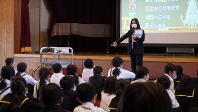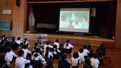 その後、危険回避の方法として「いかのおすし」を 映像『こわい! あぶない! そんなとき「いかのおすし」で…』(警視庁)で確認するとともに、教頭より 登下校時の安全についての指導がありました。