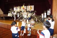 全校のみんなが短冊に願い事を書き、地域からいただいた「金明竹」にかざりました。(※金明竹は天然記念物です!)