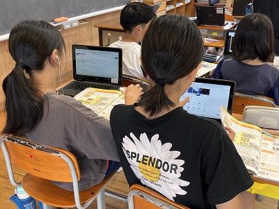 11日(金)の6年生の算数の授業では、円の面積の公式を導き出して、なぜそうなるのか自分の言葉で表すことをしました。クロムブックの中にあるヒントを見たり、実物の円を操作したりしながら、公式を見つけていました。時には一人でじっくり考える児童もいたり、友達に質問したり、どうしたらいいのか考えていました。どの児童も、たくさん考え、自己調整しながら学習を進めていて、とても学びの多い1時間でした。