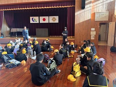 終わってから児童自身の振り返りの時間を設けました。児童からは「急な放送だったからびっくりした。」「訓練でも怖かった。」と話す姿もありました。いざという時は、自分の命を守ること、周りのことを見て落ち着いて判断、行動することの大切さを伝えました。(訓練中の写真は撮影できませんでした。)