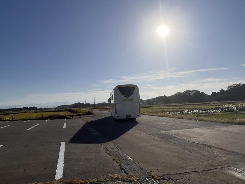 講堂で出発式をしたあと、元気に挨拶をして、バスで学校から出発しました。