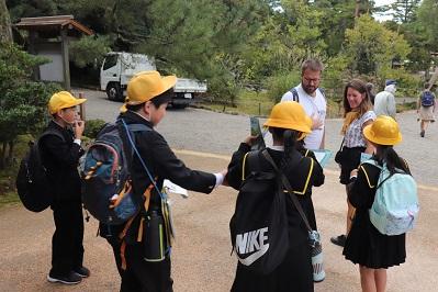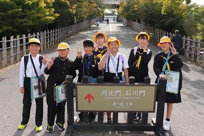 先週の金曜日に、5,6年生が校外学習(金沢自主プラン)を行いました。5,6年生縦割りの5つのグループで、プランを考え、学習しながら金沢を歩きました。時には、道に迷い学校に電話連絡をかけて状況説明する班(困ったときは、自分たちで考えて行動できる。素晴らしい!)や、時間がなくて見学場所をとばさないといけなくなった班などがありましたが、どの班も安全に時間を守って行動できました。見学地の建物や歴史などを学びました。外国の方とお話したり、写真を撮ったりもしました。また、金箔ソフトを食べたりしていましたね。