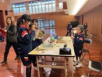 グループごとの工夫がみられ、隣に座る人を決めたり、途中でクイズを出したりと楽しく取り組んでいます。