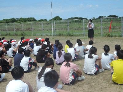 今回は、2階音楽室付近からの出火を想定し 運動場に避難したのですが、みんな真剣に素早く行動することができました。