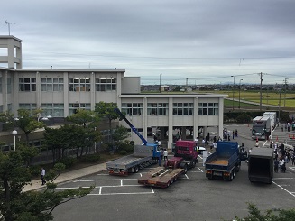 校地内に6台のトラックが入り、死角体験・乗車体験などが行われました。(9/21)