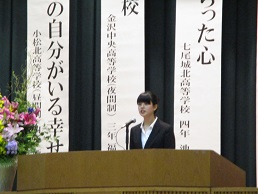 本校からも夜間制代表、昼間制代表の2名が参加し、発表しました。