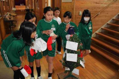 1階の廊下に、クリスマスツリーが4体並びました。これは、「ありがとうツリー」という企画委員会の企画で、みんなのありがとうやいいところをいっぱいにして、かざるそうです。24日までに、すてきなかざりで、すてきな「ありがとうツリー」になりそうですね。楽しみです。