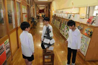 環境委員会による、「ぞうきんがけリレー」が昼休みに行われました。運動会の縦割り班で、順番を考え、レースをしました。お互いに、声を掛け合い、楽しそうでした!!